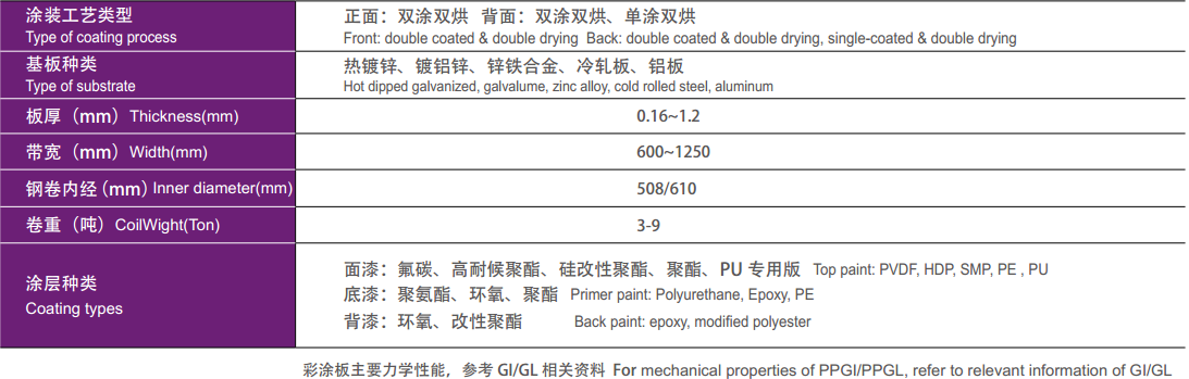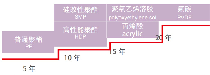 聚偏氟乙烯、高耐候聚酯、硅改性聚酯、聚酯、PU 專用版